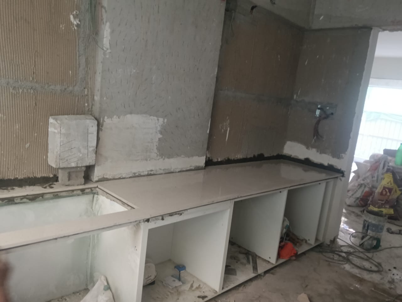 - Internal single coat plaster with gypsum mounting.